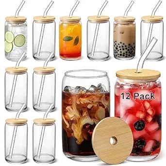 16. Glass Cups with Bamboo Lids & Glass Straws
