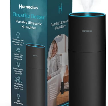 Great for bedrooms, offices, or travel bags. Adds moisture during dry months and helps with allergies and skincare.