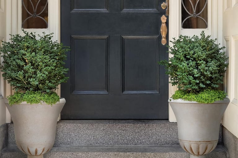 Neutral shapes that work year‑round with any greenery.